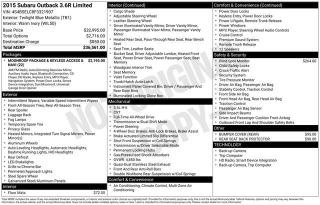 2015 Subaru Outback 3.6R Limited